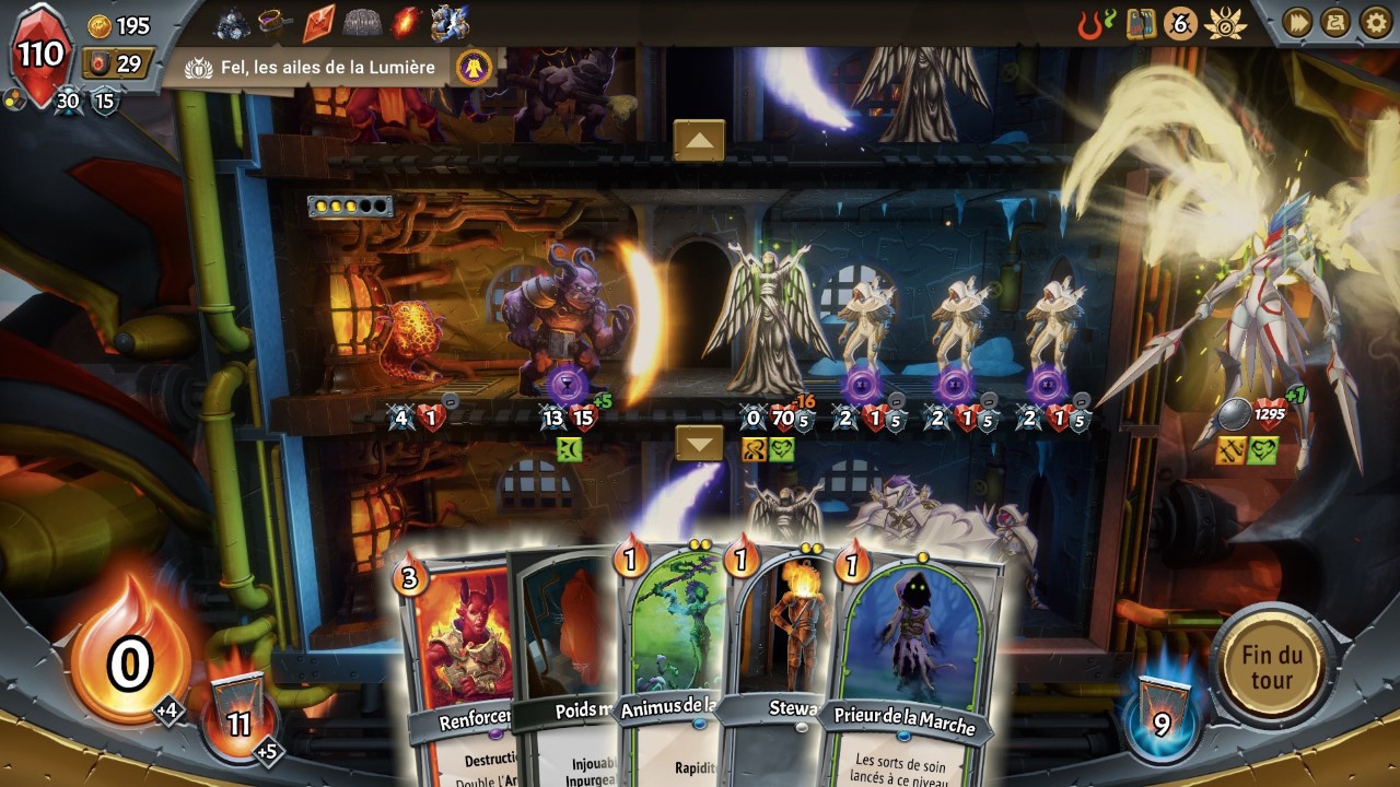 Le studio Shiny Shoe a marqué les esprits en mai 2020, avec son jeu de cartes Monster Train. A bord d’un train de l’enfer, vous devez utiliser toutes vos qualités de stratège pour défendre votre précieuse braise, devenue rare même en enfer au prise avec une inéluctable glaciation. Le train est divisé en quatre étages, dont le dernier abrite votre brasie qu’il faut à tout prix protéger des anges. Vous devez progresser dans le jeu pour obtenir de plus en plus de cartes (il y en a plus de 220) et ainsi affiner votre stratégie de défense…