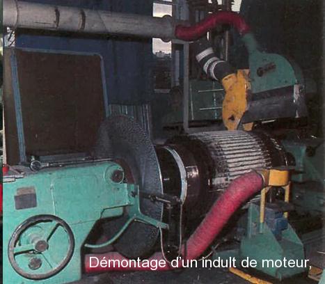 Tous les éléments constitutifs d’une machine tournante peuvent être traités dans ce secteur, les arbres et jeux de tôles remplacés, les collecteurs reconstruits, les bobines confectionnées et montées par un personnel spécialisé. Cette dernière opération, entièrement manuelle, nécessite un soin tout particulier, la moindre erreur ou inattention pouvant provoquer un défaut fatal lors des essais. La liaison bobinage collecteur est assurée par soudage électrique TIG, sans apport de métal. Les induits sont imprégnés sous vide et sous pression dans de gros autoclaves, leurs collecteurs tournés puis rectifiés, concentriquement aux portées de roulement, à l’aide d’outils- diamants.