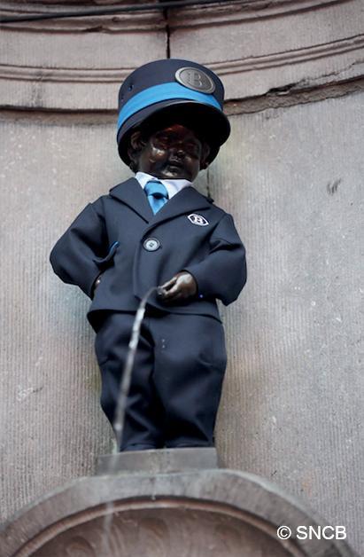 Bruxelles. Le Manneken-Pis porte le nouvel uniforme de la SNCB