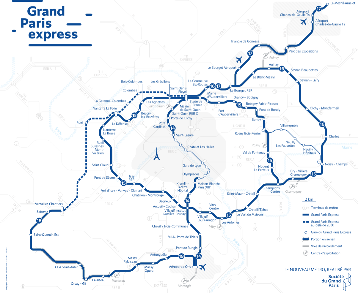 Après avoir pris en compte l’ensemble de ces aléas, les promoteurs du projet estiment désormais que le premier et le deuxième tronçon de la ligne 16 (Saint-Denis Pleyel –Clichy-Montfermeil) et le premier tronçon de la ligne 17 (Le Bourget RER –Le Bourget Aéroport) pourraient être mis en service à l’automne 2026. Au lieu de 2024 comme initialement envisagé. Le tronçon sud de la ligne 15 (Pont de Sèvres –Noisy Champs) est repoussé à la fin 2025.
