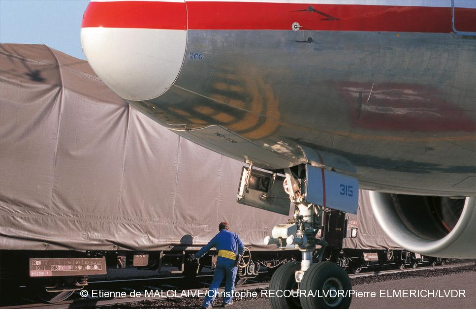 Photomontage : la marchandise passe directement des soutes de l’avion aux wagons. © Etienne de MALGLAIVE/Christophe RECOURA/LVDR/Pierre ELMERICH/LVDR