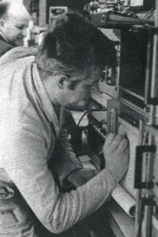 Les techniciens de la section frein surveillent l’enregistrement sur table traçante de la courbe « accélération négative = f (vitesse) » lors d’un essai de freinage d’urgence … © Ph. Hérissé