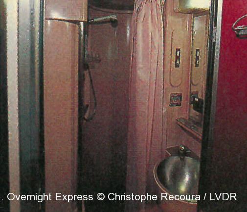 Douche et lavabo dans un compartiment « gran clase ». Overnight Express © Christophe Recoura / LVDR