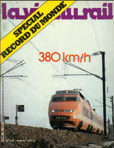 Les conditions de ce record sont en effet, à mon avis, tout autant significatives que la vitesse maximale atteinte. Sur cette voie neuve, dont les installations de traction électrique avaient été mises sous tension le 23 janvier 1981, nous n’avons circulé que cinq fois. Après une prise de contact le 3 février, nous avons roulé dès le 4 jusqu’à 314 km/h avec la rame n°21 tout à fait classique, sortie d’usine quinze jours auparavant ; seule l’électronique de commande été légèrement modifiée afin de pouvoir développer les 10 ou 11 000 kW nécessaires pour rouler à 310 km/h.