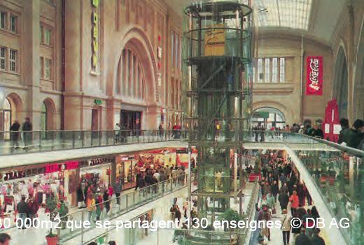 La gare rénovée de Leipzig, inaugurée le 12 novembre 1997, dispose de 30 000m2 que se partagent 130 enseignes. © DB AG