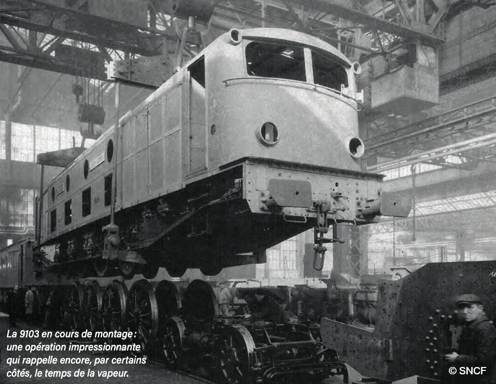 La 9103 en cours de montage : une opération impressionnante qui rappelle encore, par certains côtés, le temps de la vapeur. © SNCF