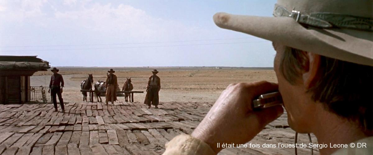 La longue scène d’ouverture d’ Il était une fois dans l’ouest, le grand succès de Sergio Leone et l’un des plus brillants exemples de western spaghetti est un bijou du cinéma. Elle sert de générique et d’entrée en matière au personnage d’Harmonica, une mystérieuse gâchette venue en découdre.